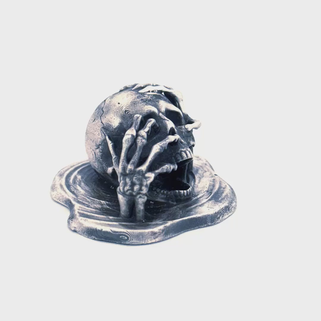 Unleash the darker side of silver art with the Black Sails Skull, a hauntingly detailed hand-poured collectible forged from 999+ pure silver. Inspired by tales of cursed treasure and ghost ships lost at sea, this eerie design captures a skull clawing its way from a melted abyss—frozen in a moment of anguish and mystery. With gothic tones and a cinematic presence, Black Sails Skull is perfect for collectors who appreciate the macabre, the mythical, and the maritime.